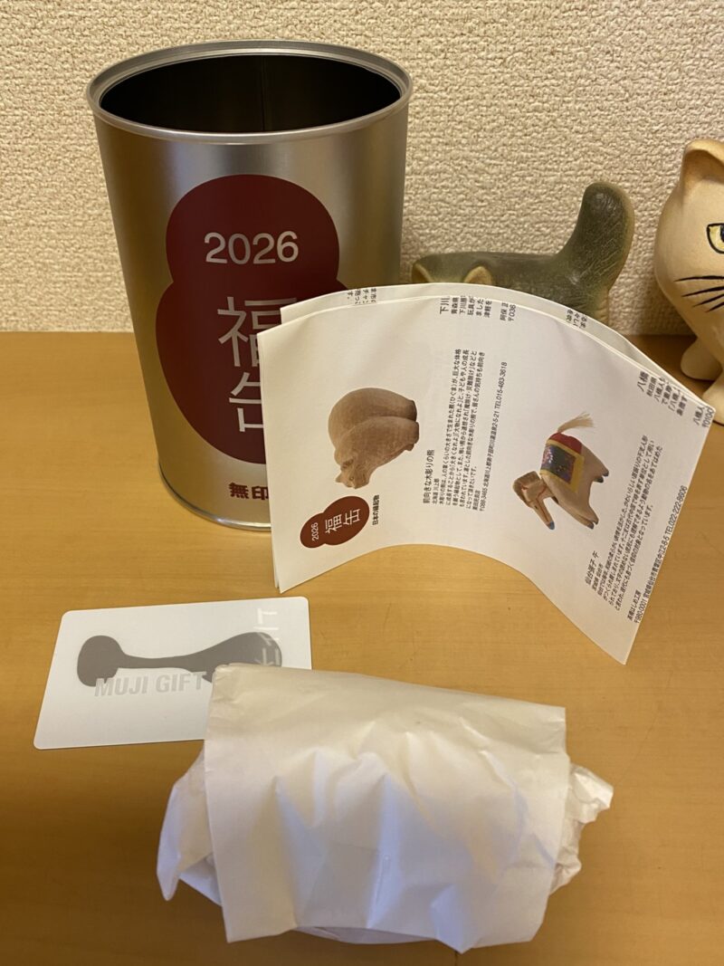 無印良品で使える2026円分のギフトカードと、日本各地の縁起物がひとつお楽しみで入っています✨